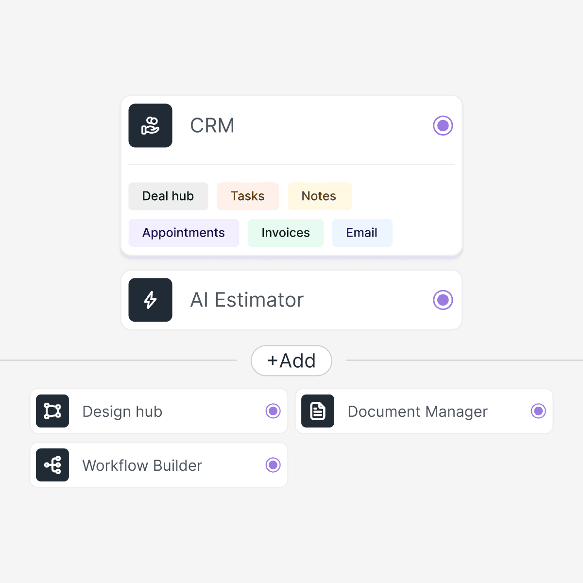 Yes. Aether is modular by design—start with one or two tools (like CRM and Estimator) and activate other blocks like Design, Docs, or Workflows as your business grows.